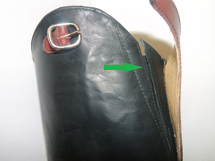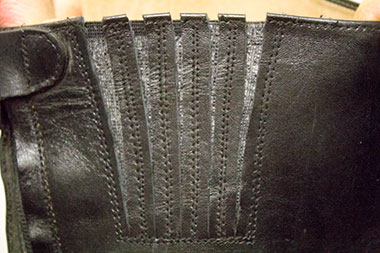 Es ist auch möglich Ihre Reitstiefel mit einem verdeckten Gummizug zu erweitern. Diese Variante eignet sich besonders gut bei Stiefel ohne Reißverschluss. Selbstverständlich ist diese Variante aber auch bei Stiefel mit Reißverschluss möglich. Durch den Gummizug wird ca. 2 - 3 cm breite Dehnbarkeit erreicht. Das Ein- und Aussteigen wird dadurch erleichtert.